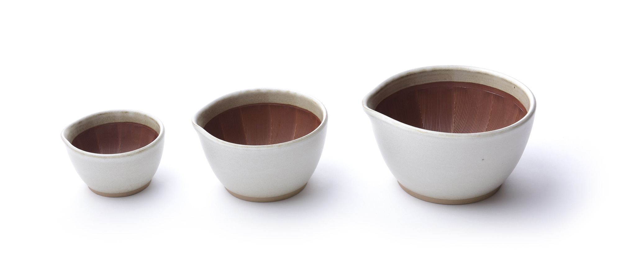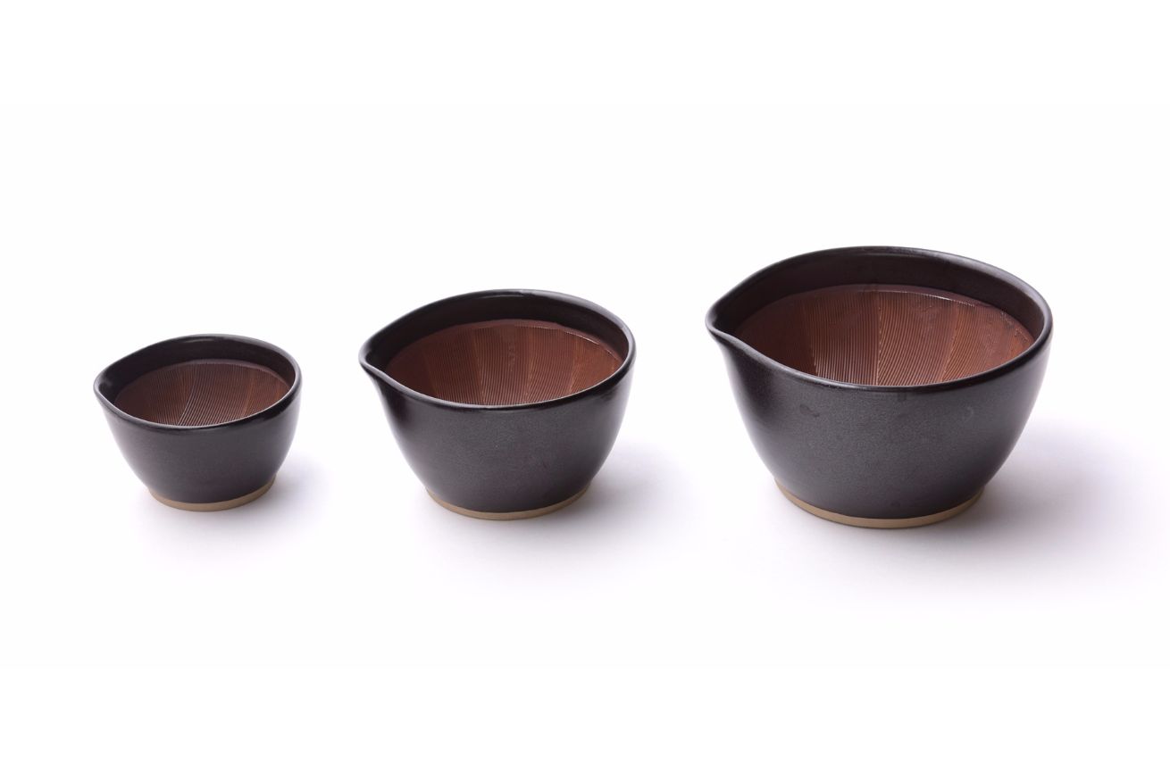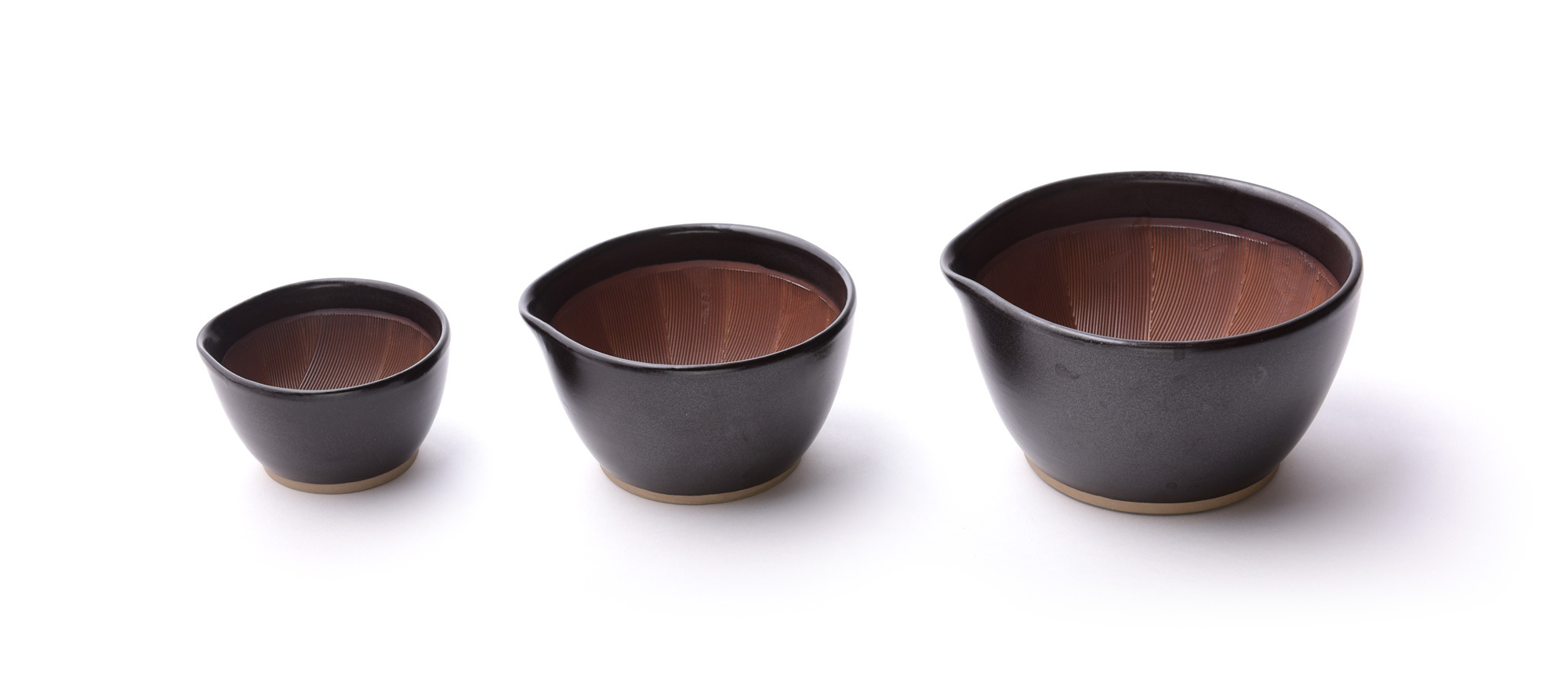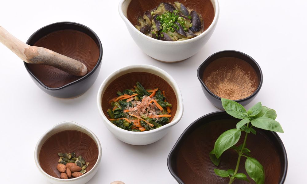 A grinding bowl suribachi, a common cooking tool in Japan for grinding and mashing food. The jagged surface inside the bowl makes it easy for grinding but also leaves enough texture of ingredients. Suri-bowls are perfect for making guacamole dip, mashed potato, or spice mix.