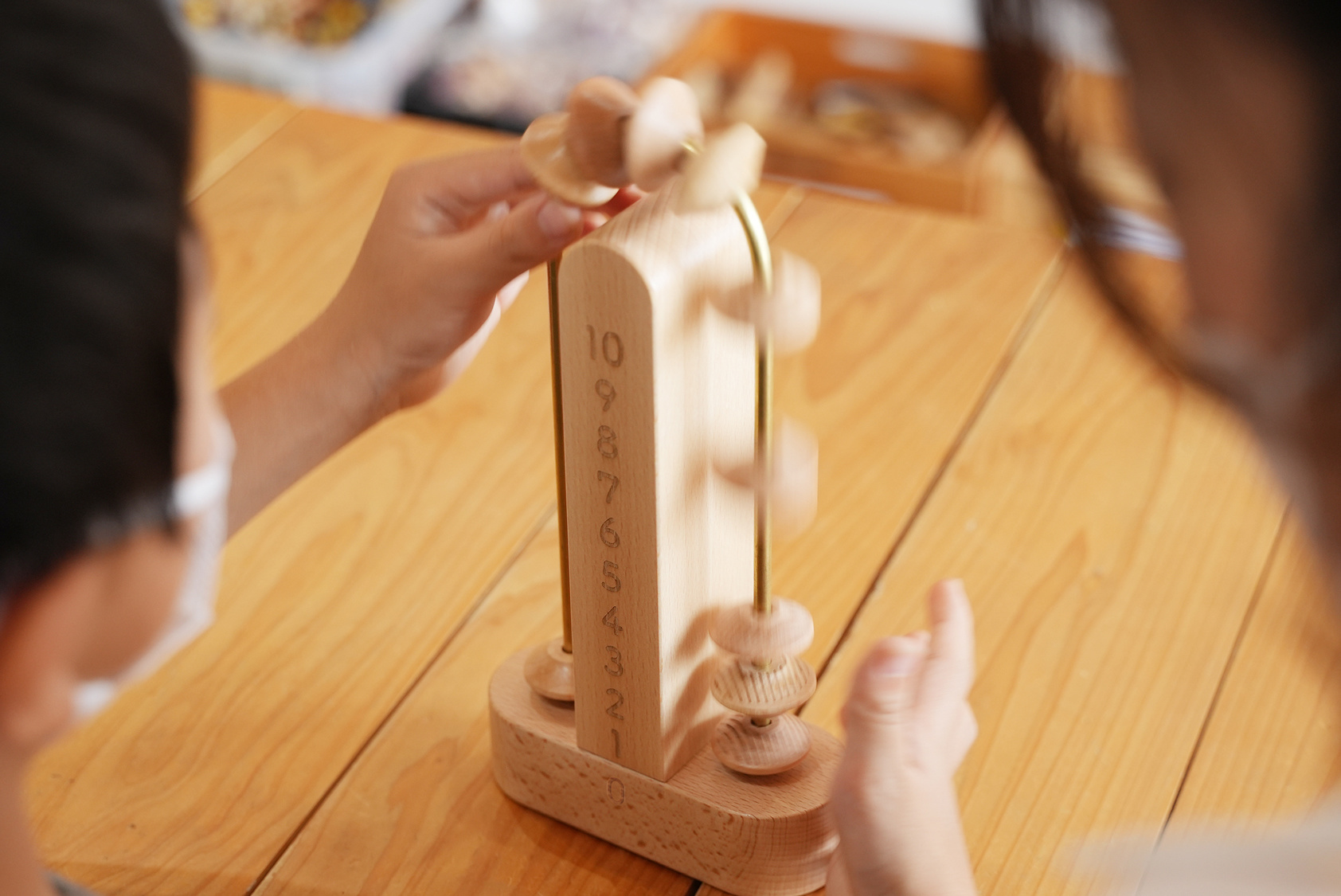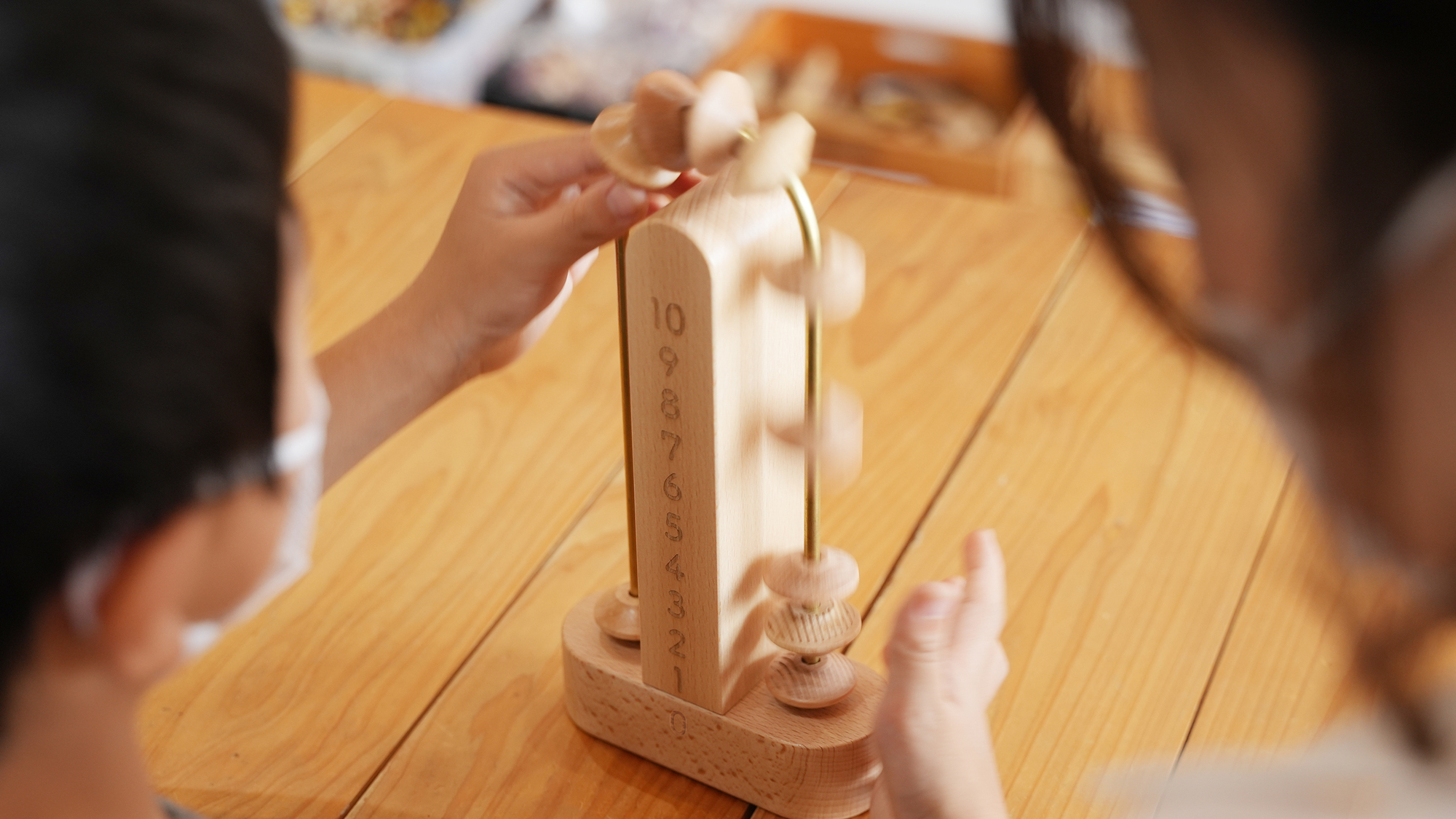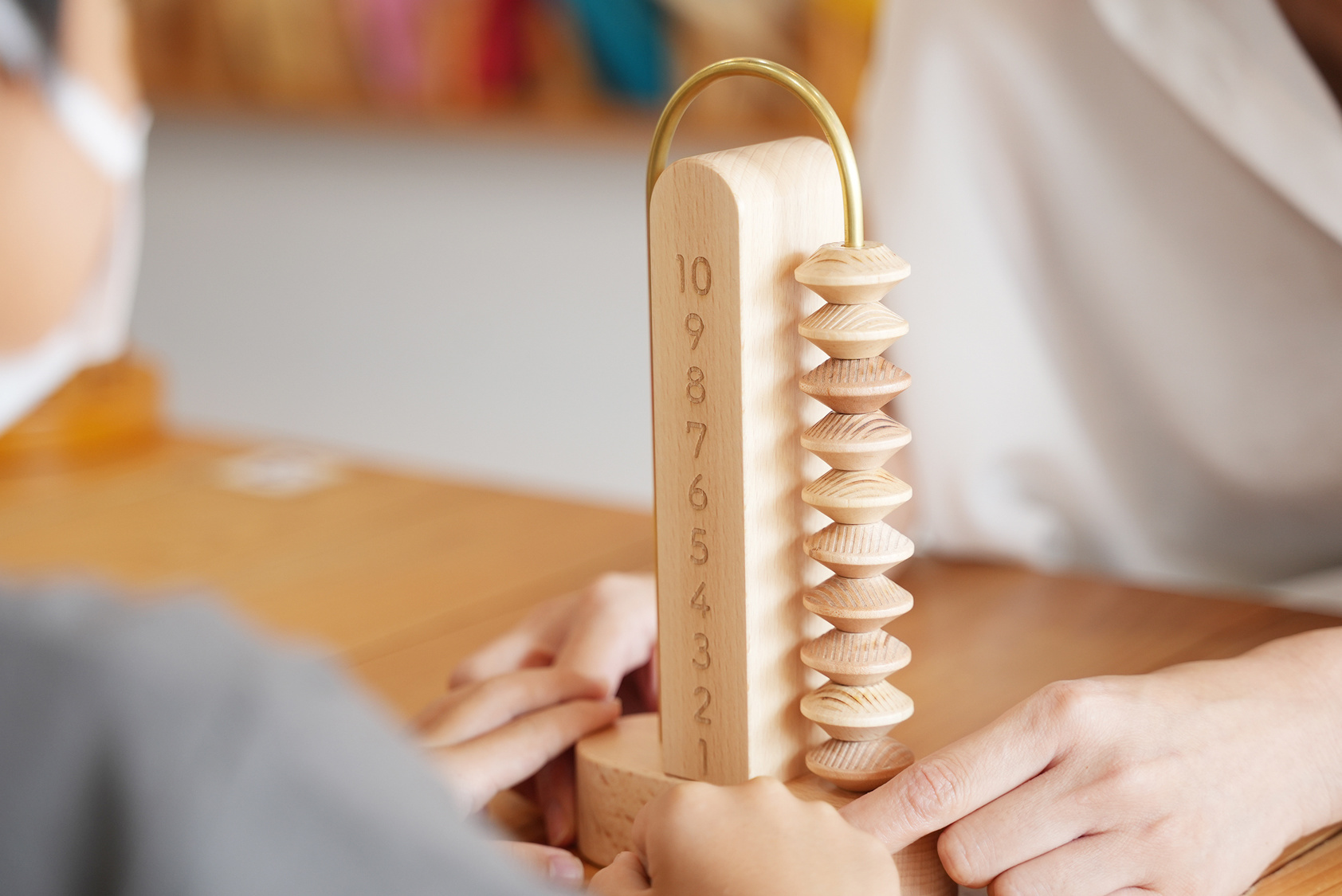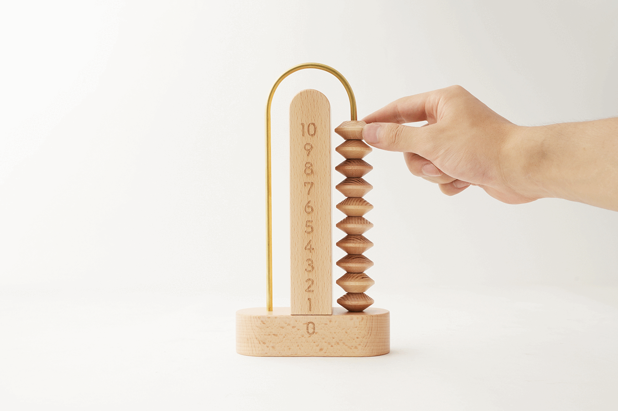 Equal 5 and 10 are educational toys co-designed by a speech pathologist and a product designer using the traditional learning methods and crafting techniques of the Banshu abacus, an officially recognized traditional craft from Ono in the Hyogo prefecture. The numbers in the front are written vertically and the ones on the back are written horizontally. For the face-to-face learning session, we recommend setting the product upright while placing it sideway is more suitable for self-study. You will enjoy the clicking sound and texture of the wooden beads. This abacus makes learning fun!