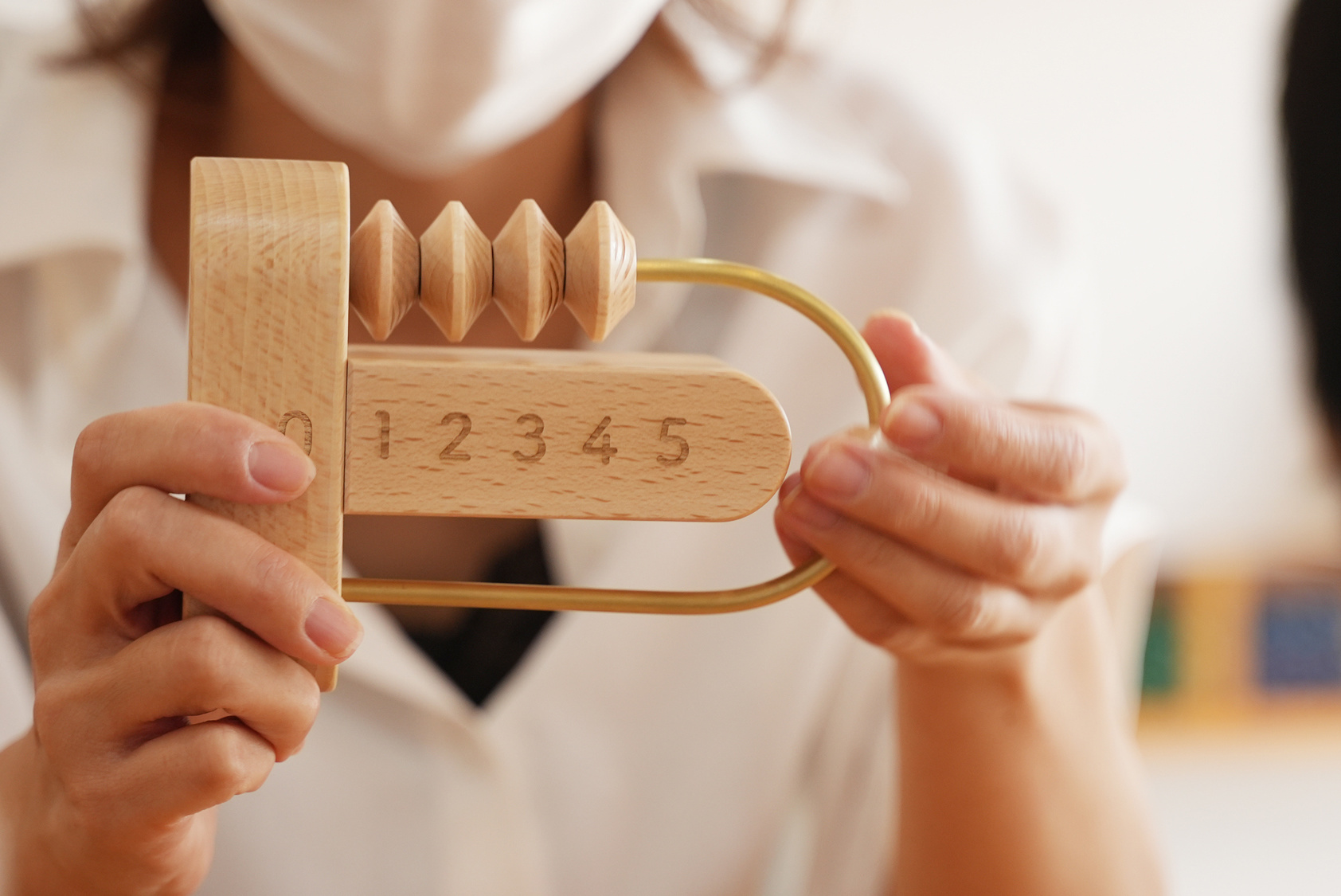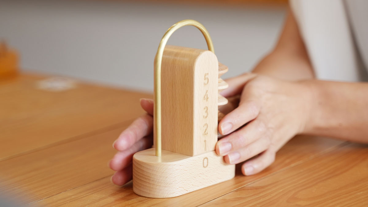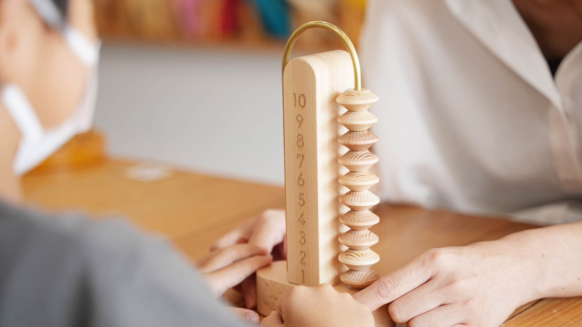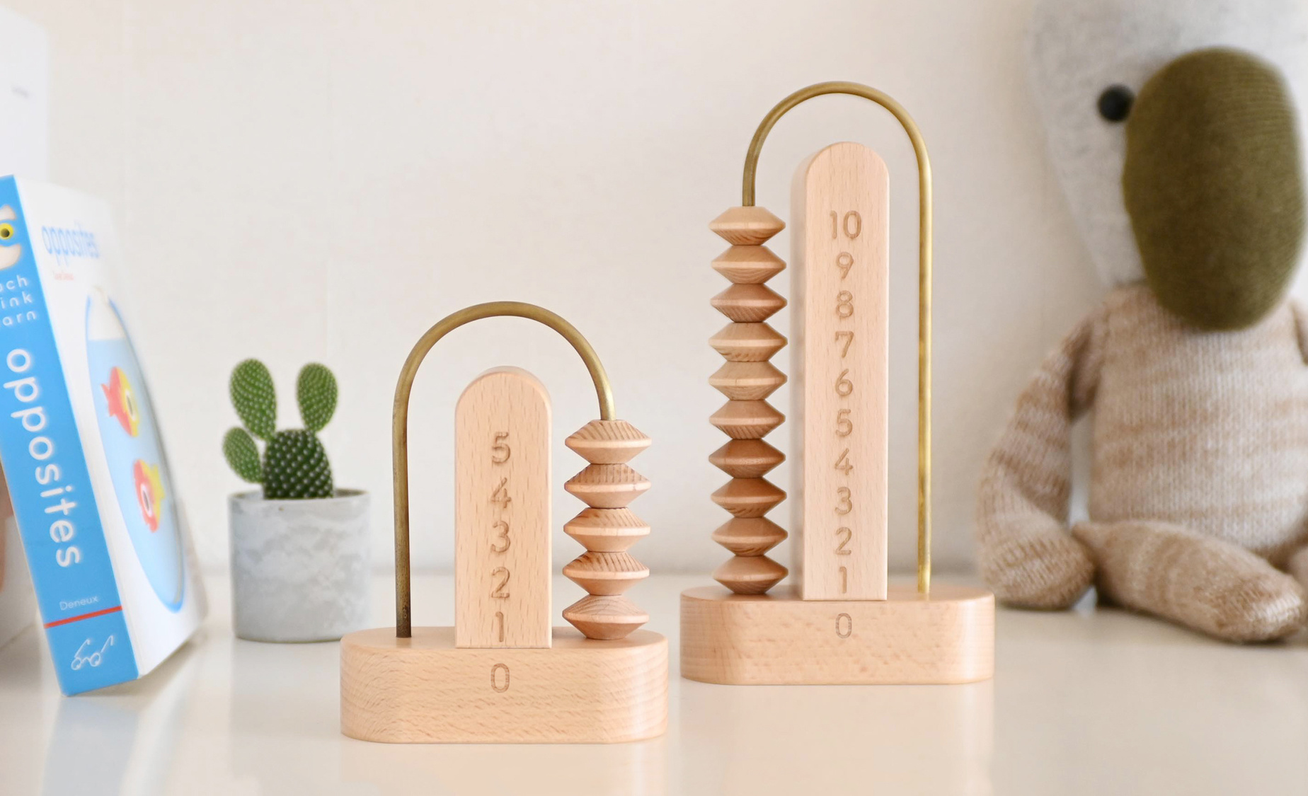 Equal 5 and 10 are educational toys co-designed by a speech pathologist and a product designer using the traditional learning methods and crafting techniques of the Banshu abacus, an officially recognized traditional craft from Ono in the Hyogo prefecture. The numbers in the front are written vertically and the ones on the back are written horizontally. For the face-to-face learning session, we recommend setting the product upright while placing it sideway is more suitable for self-study. You will enjoy the clicking sound and texture of the wooden beads. This abacus makes learning fun!