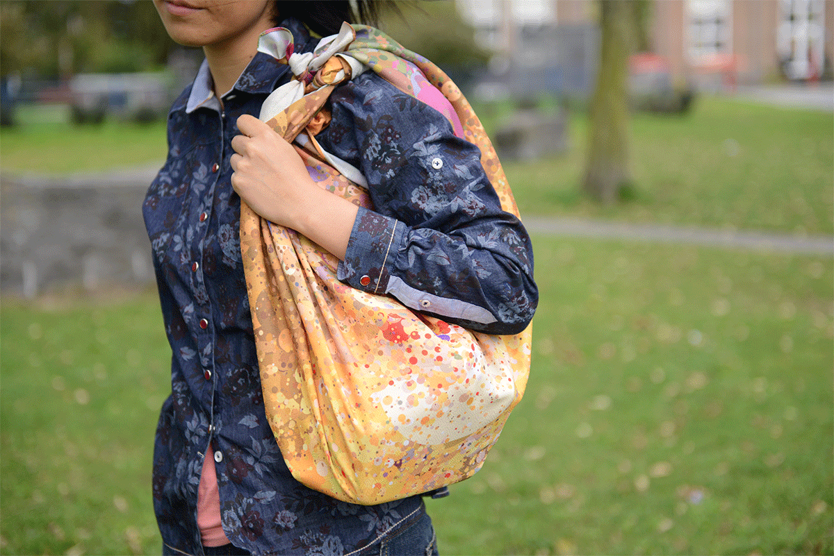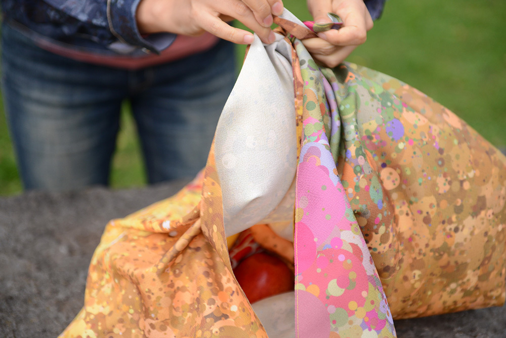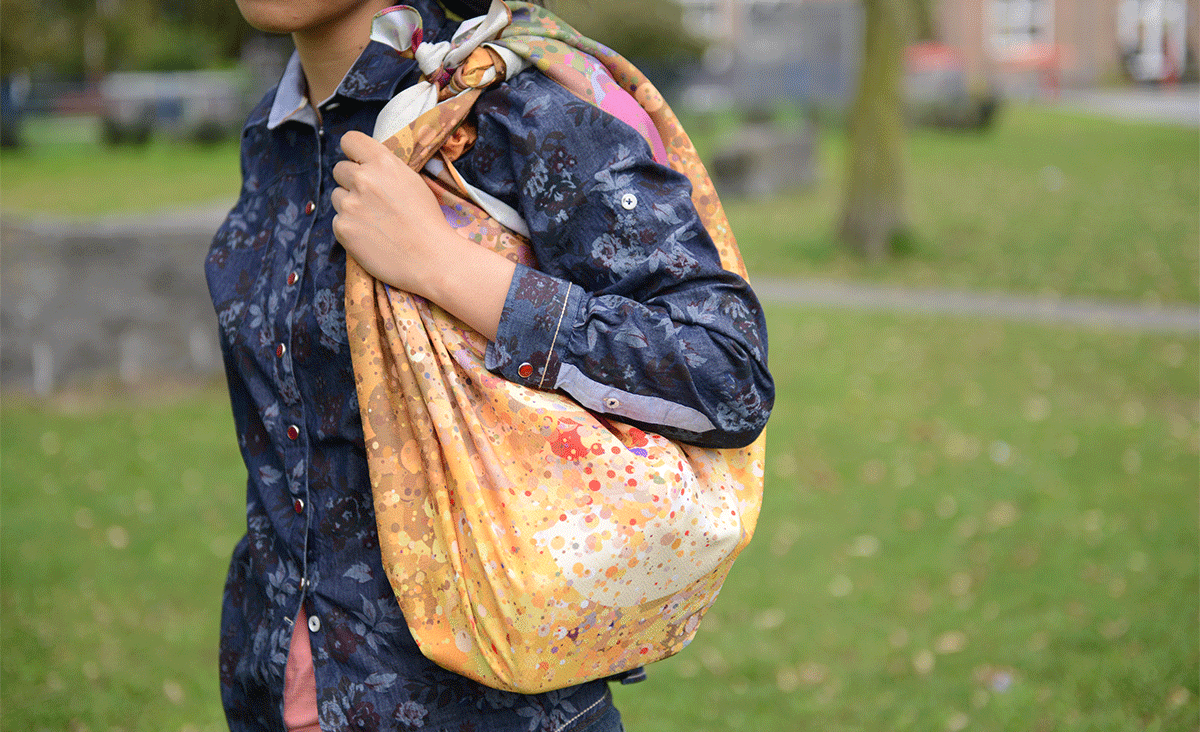 Furoshiki is a piece of square cloth for wrapping anything you wish: from a daily lunch box to a fancy gift. This traditional wrapping culture in Japan is reborn as 'MEIGA furoshiki', which is specially designed for daily use in Europe. Enjoy their countless ways of use: as a eco-bag, a gift wrapping, a suitcase organizer, a tapestry and more.