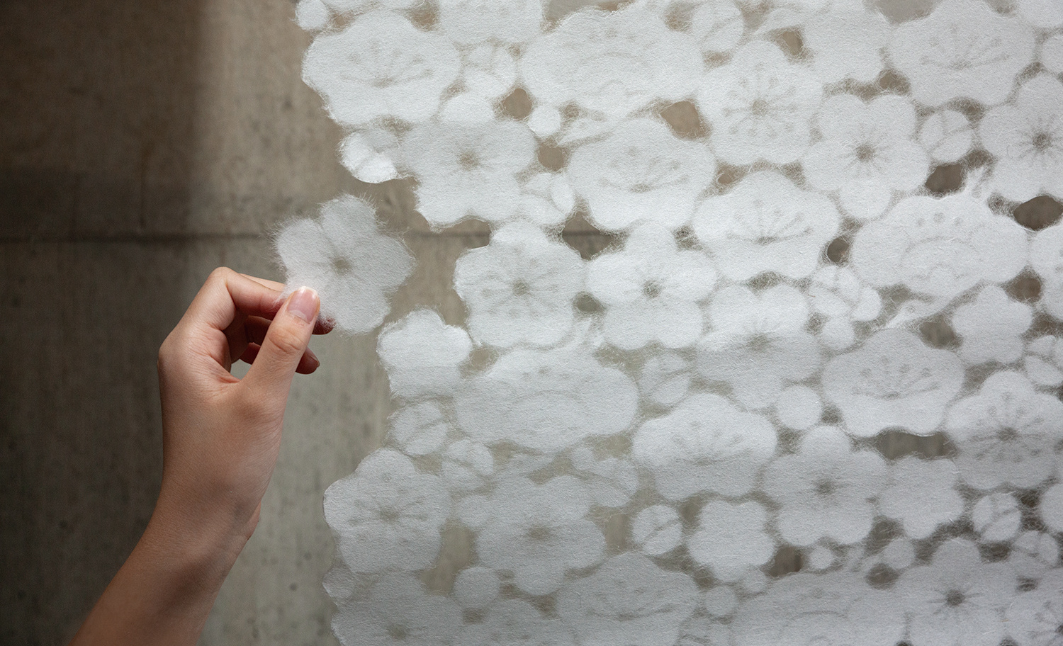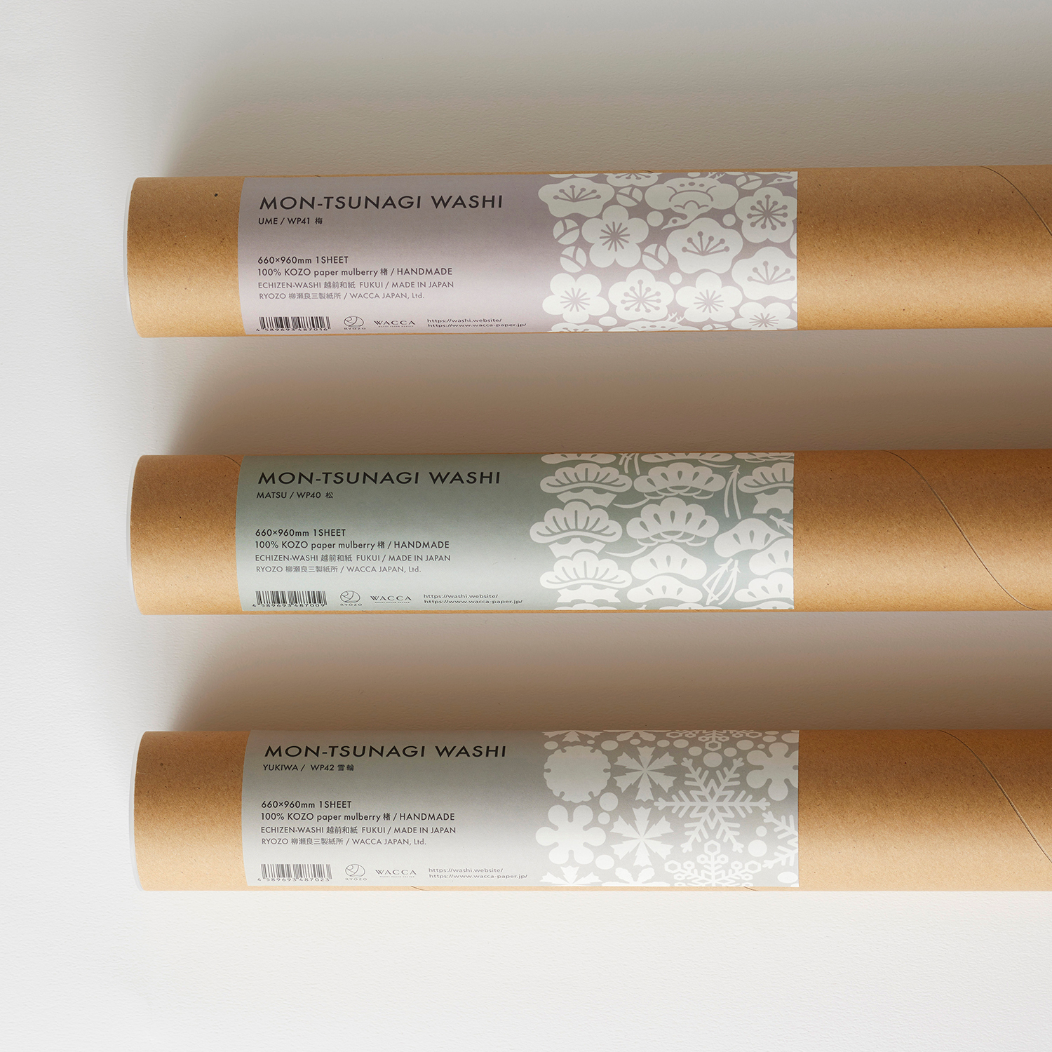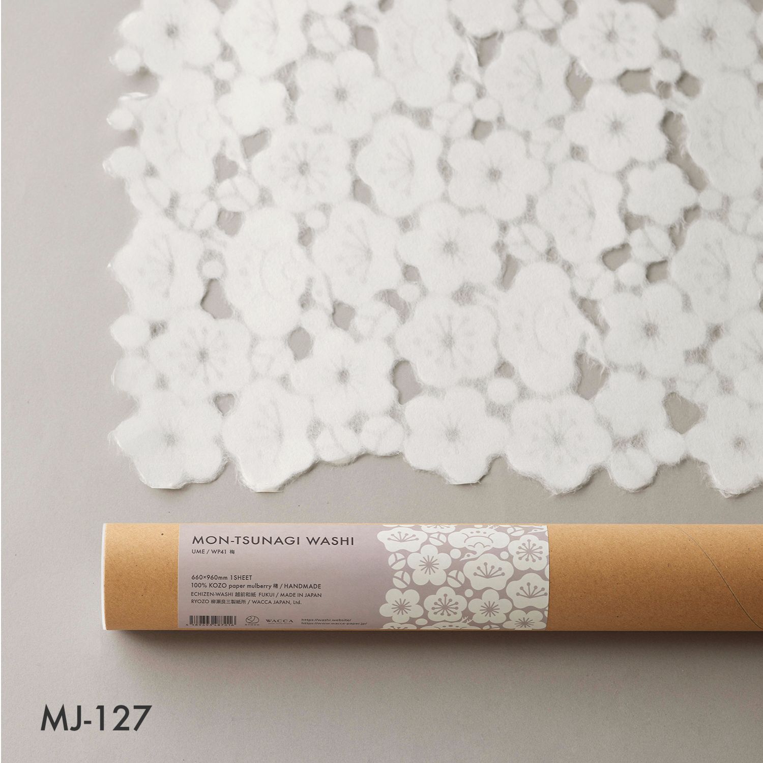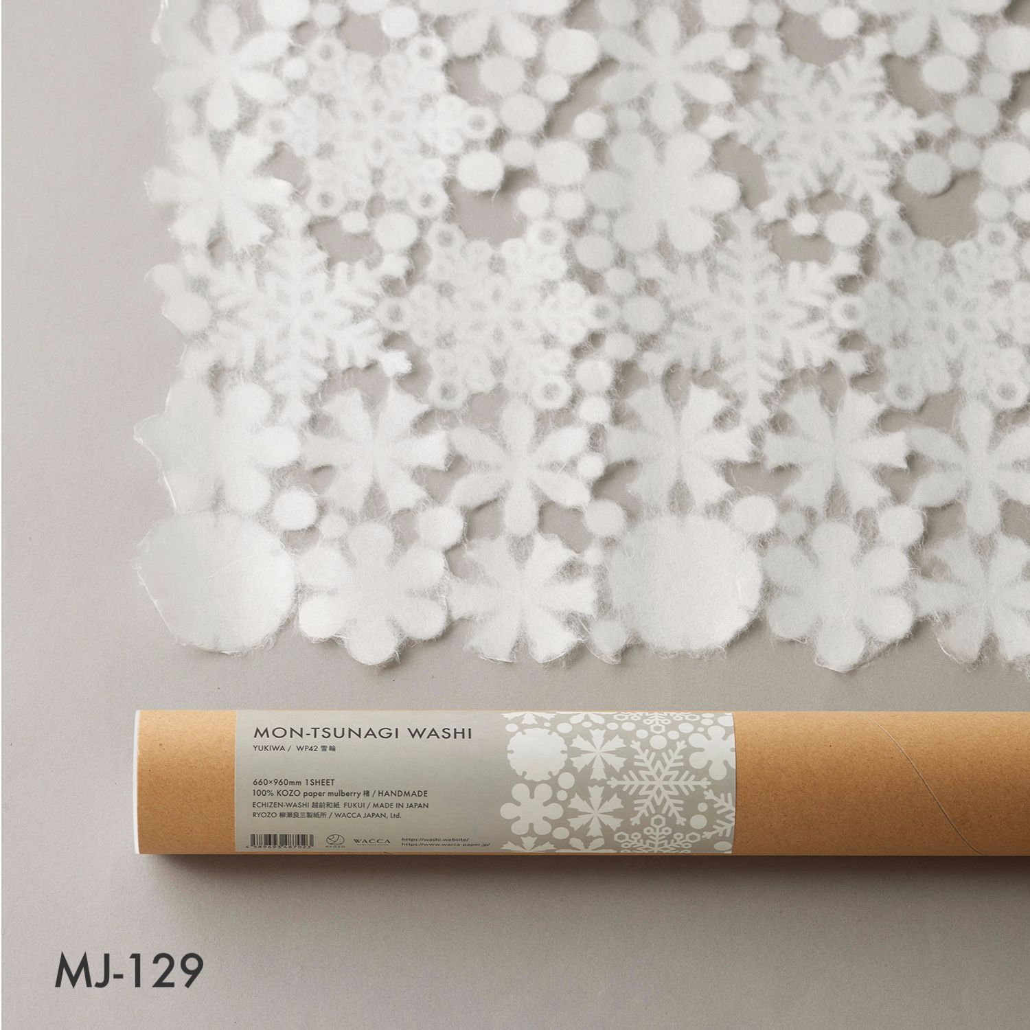 Mon Papier is handmade Japanese paper made from kozo (paper mulberry), with small cut-out motifs interconnected to create a sheet of paper. Each sheet of paper features a distinctive pattern, or mon in Japanese, as kozo fibers organically connect the cut-out motifs, forming a single large sheet of washi. Unlike traditional watermarking techniques or laser cutting, this washi produces unique floating effects. The product was collaboratively developed by the boutique washi brand WACCA and Ryozo Yanase Paper Mills of Echizen Washi in the Fukui Prefecture.