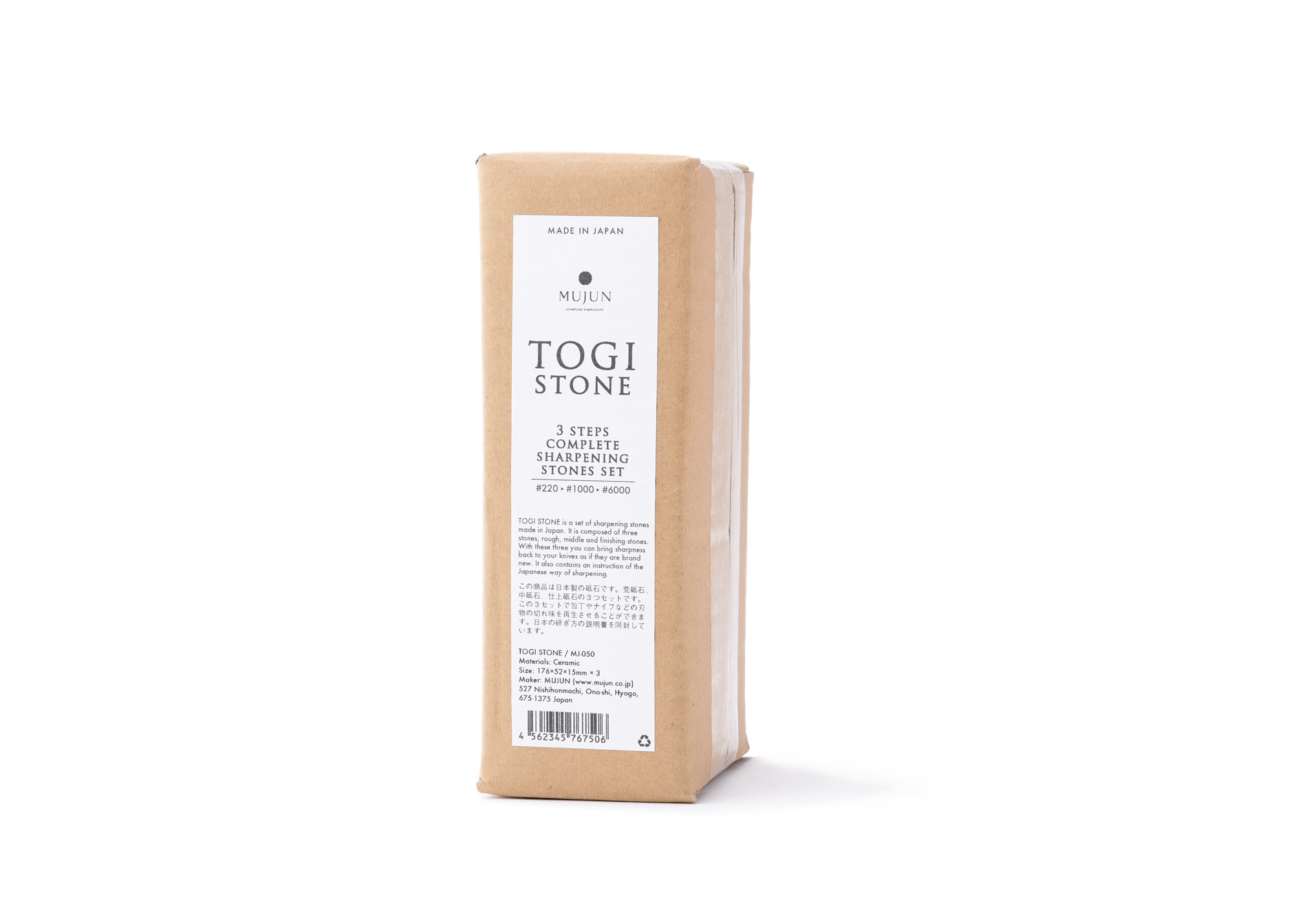 TOGI STONE is a set of sharpening stones made in Japan. It is composed of three stones; rough, middle and finishing stones. With these three you can bring sharpness back to your knives as if they are brand new. It also contains an instruction of the Japanese way of sharpening.